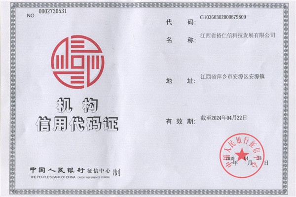 机构信用代码证